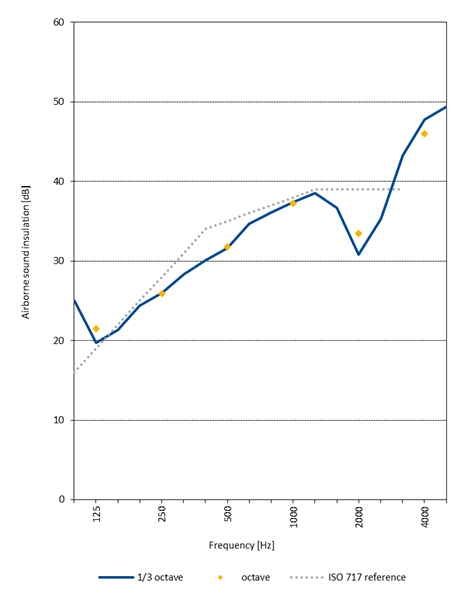 | Freq. [Hz] | R [dB] 1/3 oct. | R [dB] oct. |