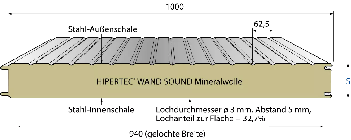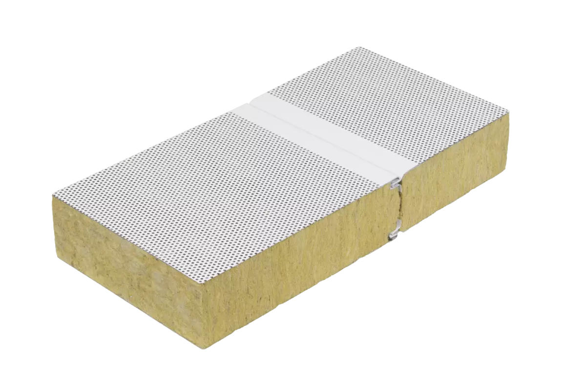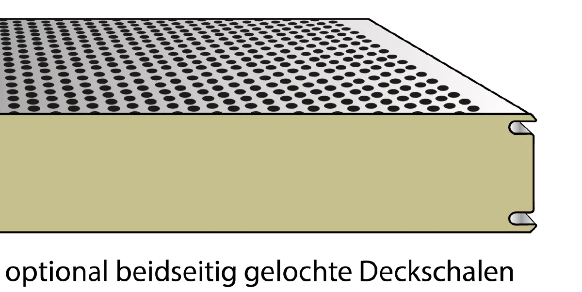 Das Schallschutzelement mit schallabsorbierender gelochter Innenschale ist insbesondere für Wände und Decken im Inneren eines Gebäudes geeignet. In dem von Metecno patentierten System ist zwischen der Innenschale und dem Dämmkern aus Mineralwolle ein spezielles Vlies als Rieselschutz eingelegt. Die Ausbildung der Innenschale trägt erheblich zur Verbesserung der Raumakustik bei. Außerdem werden durch die hohe Dichte des Dämmkerns gute Schalldämmwerte erreicht. Nach Rücksprache mit uns und nach Überprüfung der statischen Möglichkeiten kann das Schallschutzelement auch zur Wandverkleidung unbeheizter Gebäude eingesetzt werden. Für Außenwände ist eine Zustimmung im Einzelfall erforderlich. Von einem Einsatz in Feuchträumen und beheizten Gebäuden müssen wir aufgrund der dampfdiffusionsoffenen Innenschale abraten. Die beidseitig aufgebrachte Schutzfolie vermeidet Verschmutzungen und Beschädigungen während Transport, Lagerung und Montage.