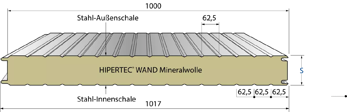 Das Sandwichelement mit einem nichtbrennbaren Dämmkern aus Mineralwolle ist besonders bei hohen Anforderungen an den Brand- und Schallschutz für den Einsatz als Außen- und Innenwand gleichermaßen geeignet. In spezieller Ausführung mit ergänzenden Details erreicht das Element einen Feuerwiderstand von bis zu 120 Minuten. Die Überbrückung großer Stützweiten und die leicht montierbare Längsfuge in Nut- und Federausführung ermöglicht eine besonders wirtschaftliche Montage in vertikaler oder horizontaler Richtung. Die Fasern der Mineralwolle sind senkrecht zur Verkleidungsebene angeordnet. Durch ein besonderes Herstellungsverfahren werden die in Längsrichtung eingelegten Mineralwollstreifen im Verbund ausgerichtet. Die bauphysikalischen Vorzüge durch die hohlraum- und wärmebrückenfreie Verbindung der korrosionsgeschützten Deckschichten mit dem Dämmkern machen das Hipertec Wandelement zu einer zukunftsweisenden Alternative gegenüber mehrschichtigen Systemen. Eine werkseitig aufgebrachte Schutzfolie vermeidet Verschmutzungen und Beschädigungen während Transport, Lagerung und Montage. Große Lieferlängen werden durch den kontinuierlichen Herstellungsprozess ermöglicht. Für zusätzliche Informationen steht Ihnen ein technisches Handbuch zur Verfügung.