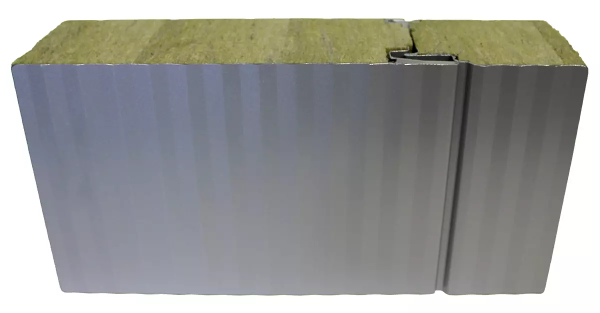 Das Sandwichelement mit einem nichtbrennbaren Dämmkern aus Mineralwolle verfügt über eine Fugengeometrie für verdeckte Befestigung und einer mikroprofilierten Außendeckschale. Dieses Wandelement ist besonders geeignet für qualitativ hochwertige industrielle und kommerzielle Gebäude, bei denen Ästhetik und Brandschutz gleichermaßen im Vordergrund stehen. Durch die mögliche horizontale oder vertikale Montage ergeben sich unterschiedliche Gestaltungsmöglichkeiten. Für Gebäude mit hohen Windsogkräften wird eine horizontale Einfeldkonstruktion empfohlen, um zusätzlich erforderliche sichtbare Schrauben durch ein vertikales Lisenenprofil abdecken zu können. Die Fasern der Mineralwolle sind senkrecht zur Verkleidungsebene angeordnet. Ein besonderes Herstellungsverfahren ordnet die in Längsrichtung eingelegten Mineralwollstreifen im Verband an. Durch die Verklebung des Dämmkerns mit den metallischen Deckschalen entsteht eine schubfeste Verbindung, welche entscheidend für die hohe Tragfähigkeit ist. Die passgenaue doppelte Labyrinthfuge sorgt für einen überlegenen mechanischen Widerstand und bildet eine wärmebrückenfreie Verbindung. Eine an der Außenseite aufgebrachte Schutzfolie vermeidet Verschmutzungen und Beschädigungen während Transport, Lagerung und Montage. Große Lieferlängen werden durch den kontinuierlichen Herstellungsprozess ermöglicht. Für zusätzliche Informationen steht Ihnen ein technisches Handbuch zur Verfügung.